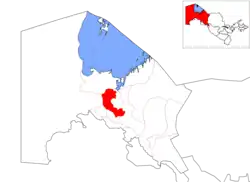 Kegeyli District (Uzbek: Kegeyli tumani, Karakalpak: Kegeyli rayonı) is a district of Karakalpakstan in Uzbekistan. The capital lies at the town Kegeyli.[1] Its area is 920 km2 (360 sq mi)[2] and it had 73,600 inhabitants in 2022.[3]