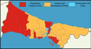| 2009 | 2,568,710 | 36.98% | New | Republican People's Party | ![]() |