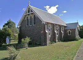 The district now has several well-known Merino sheep studs and produces some top super fine wool, as well as quality beef cattle. Apples, cherries, pears and other stone fruit are available from the orchards during the season. The Kentucky Tree Nursery produces many low cost trees and shrubs for farm planting. A boutique distillery and brewery (Dobson's),[4] a fine-dining restaurant (Pinot)[5] and a sophisticated nightclub (The Speakeasy)[6] together comprise Eastview Estate,[7] developed since 2009 immediately to the north-east of the village. Kentucky also has two churches, a community hall, general store and a progressive public school. Some of the country gardens are opened to the public through the open gardens scheme and community fund raising schemes. The current population is about 60 persons.