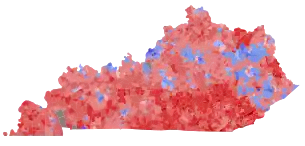 Beshear won by 0.37 percentage points, receiving 49.20% of the vote to Bevin's 48.83%.[3] Bevin won 97 counties, while Beshear won 23 counties.[4] Beshear also carried only two of the state's six congressional districts, but those districts were the state's two most urbanized, the Louisville-based 3rd and the Lexington-based 6th.[5]