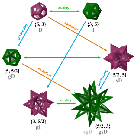 - Conway et al. (2008), p.405 Figure 26.1 Relationships among the three-dimensional star-polytopes