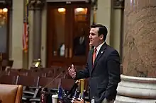 During his first term, Byrne introduced and passed ten bills in the Assembly, eight of which passed the Senate and were signed into law by the governor, more than most other freshmen members during that time.[15][16] During his three terms in the Legislature, Byrne introduced and passed over twenty bills that have been signed into law by either Governor Andrew Cuomo or Governor Kathy Hochul.[17]