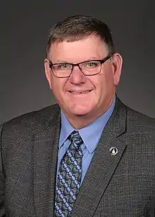 Kevin Kinney (born 1963) is the Iowa State Senator from the 39th District.[1] A Democrat, he has served in the Iowa Senate since 2015. Kinney is a farmer and a former lieutenant with the Johnson County Sheriff's Office. He was born and raised in Oxford, Iowa, attending Clear Creek High School. He currently lives just outside of Oxford with his wife Debbie and two children.[2]