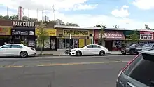 The commercial areas of the neighborhood include Main Street, Union Turnpike, Parsons Boulevard, and Kissena Boulevard. Main Street, in particular, is home to many Jewish-themed stores and Kosher restaurants. Many of the businesses along Main Street in Kew Gardens Hills close for Shabbat due to the area's large Jewish population.[30] Many businesses along Kissena Boulevard, on the other hand, have closed permanently due to an economic downturn.[73]