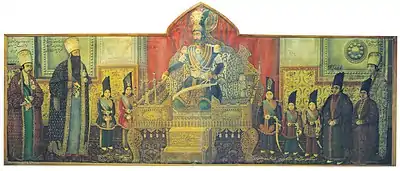 ![]() A mural in the Nizamiyeh mansion. Mirza Aqa Khan Nuri is seen as the Prime Minister. | |