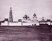 Urbanization of the territories beyond the walls of Bely Gorod (Boulevard Ring) is credited to Ivan Grozny. Ivan allocated these lands to Oprichnina, his own private domain. Very soon, Ivan's faithful associates resettled into oprichnina lands, thus present-day Ostozhenka, Prechistenka and Sivtsev Vrazhek streets initially developed as upper-class neighborhoods and retained this status ever since.[5] Lanes in these neighborhoods (Mansurovsky, Khrushyovsky etc.) are named after original landlords. Ivan's son, childless Fyodor I, instituted extant Conception Monastery between Ostozhenka and Moskva River on the site of old Saint Alexis convent that perished in the Fire of Moscow (1547). Until the 1830s, frequent floods discouraged construction near the river, and the boundary of inhabited territories was 100–200 meters to the north from present-day embankment (see Vodootvodny Canal for more details). Legacy of 16th century survives in historical red and white chambers across Christ the Saviour, restored to their (perceived) original shape.