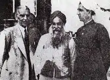 Tiwana remained opposed to the partition of India to the end.[19][20] He felt that Muslims, Sikhs and Hindus of the Punjab all had a common culture and was against dividing India to create a religious segregation between the same people.[21] Tiwana, himself a Muslim, remarked to the separatist leader Muhammad Ali Jinnah: "There are Hindu and Sikh Tiwanas who are my relatives. I go to their weddings and other ceremonies. How can I possibly regard them as coming from another nation?"[21] He refused to accept the two-nation theory, and believed that a Muslim majority government in the Punjab would be an important guarantee of the rights of Muslims in a minority province.[17] Tiwana advocated for amity between the religious communities of undivided India, proclaiming March 1 as Communal Harmony Day and aiding in the establishment of a Communal Harmony Committee in Lahore presided over by Raja Narendra Nath with its secretary being Maulvi Mahomed Ilyas of Bahawalpur.[21] As a last ditch attempt to avoid partition, Tiwana attempted to convince the British to accept his proposal for an independent Punjabi state, a separate entity to both India and Pakistan.[22]