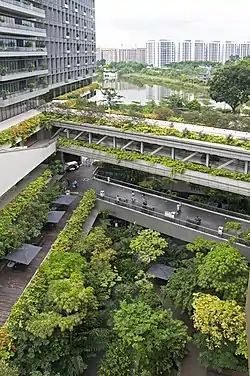 The hospital also incorporates environmentally friendly features. The building uses 30% less energy than other hospitals[10] leading to a savings of more than S$1 million a year on utilities costs.[9]