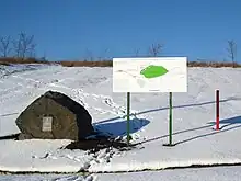 In 2016, Institute of Archaeology of Ukrainian Academy of Sciences prepared one more documentation of the hillfort, where protected area includes almost 20 ha. It comprises the 16.5 ha from 2007 scheme plus the western border of the plateau with the rampart and scarp. Additionally, part of a buried erosion zone is included. In the same year, new borders were approved by Khotiv village council[34][35] and marked by red concrete pillars. Three stones with commemorative plaques and an information board were installed on the hillfort as well. Area of the archaeological monument stated on the board is 18.3 ha, and area of its protection zone (a strip along its western edge) is 1.04 ha. It excludes all the northern, southern and eastern parts of the hillfort (the latter still having a well-preserved rampart and scarp). The rest of the hillfort is planned for museumification.[36]