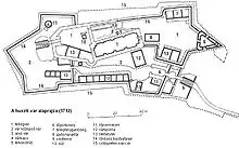 The former Hungarian castle lies on a 150-meter high mountain near the center of the city.[1]