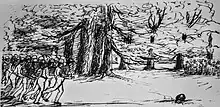 The oldest published laws of football (Rugby School, 1845) specify that the game is to be started with a "kick off" from the middle of the field of play, which must be a place-kick.[9] Most codes of laws from this era provide for a similar "kick off" from the centre of the ground; these include the Cambridge rules of 1856,[10] the Sheffield rules of 1858,[11] and the 1858 rules of Harrow football.[12] One exception is the laws for the Eton field game (1862), which specify instead a "bully" in the middle of the field (similar to a scrummage in rugby union).[13]