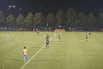 In 1875, it was forbidden to score a goal directly from the kick-off.[33] This restriction was reversed in 1997, when it was permitted once again to score a goal directly from the kick-off.[34] In 2016, at the same time the backwards kick-off was legalized, the possibility of scoring an own goal directly from the kick-off (an extremely unlikely situation) was removed, with a corner kick being awarded to the opponents instead.[35]