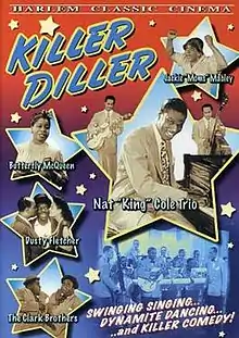 Killer Diller is a 1948 American musical comedy race film[1] directed by Josh Binney and released by All American.[2] Academic and comedienne Eddie Tafoya wrote that "Killer Diller is really more concerned with showcasing black talent appearing at Harlem's legendary Apollo Theater than it is with providing audiences with a satisfying story."[3] The movie features The Clark Brothers (tap dancers), Nat King Cole, Moms Mabley, Dusty Fletcher, Butterfly McQueen, the Andy Kirk Orchestra and the Four Congaroos (dancing the Lindy Hop). René J. Hall was the film's arranger.[4]