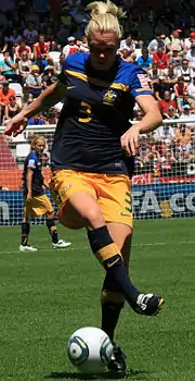 She has been a member of the Australian national team since 2005, winning the 2010 Asian Cup and taking part in the 2011 World Cup.[13]