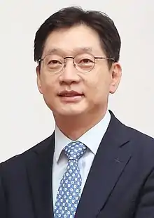 Kim Kyoung-soo (born 1 December 1967) is a South Korean politician who served as a member of the National Assembly of South Korea from 2016 to 2018, and as Governor of South Gyeongsang Province from 2018 to 2021, until he was convicted and arrested for opinion rigging.[1][2][3]