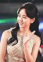 In 2016, she returned to the big screen in a romance film Pure Love opposite Do Kyung-soo, playing the heroine of the film who has a beautiful voice but suffers from a leg injury.[65][66] Kim then starred in a mystery-school web drama Nightmare Teacher alongside Lee Min-hyuk, playing a class president who discovers mysterious secrets of the school.[67][68] The drama was filmed and featured nine students at Hosan University.[69] The same year, Kim starred in Park Hye-ryun's three-episode drama special Page Turner opposite actors Ji Soo and Shin Jae-ha.[70] She played the role of a "piano genius" who lost her sight after an accident.[71] The number of video previews released in the web and mobile achieved 600,000 views which was considered "an unusual number" as a one-act play.[72] Kim's first fan meeting Lovely Day in Taiwan was held at Ming Chuan University on April 9.[73] She was dubbed as the "Korean Wave Fairy" by the Taiwanese media.[74] On June 4, Kim hosted the 2016 Dream Concert with Leeteuk and Hong Jong-hyun.[75] She made her next acting move in the horror-comedy Hey Ghost, Let's Fight with Ok Taec-yeon,[76] and played as the 13-year-old Princess Deokhye in the film The Last Princess,[77] for which Park A-reum of K-pop Herald praised Kim for her in-depth emotional acting in the scene before her farewell to her mother (which Park called heartbreaking), as well as the high sync rate with Son Ye-jin.[78] Also, Jung An-ji of Sports Chosun praised her for the historical accuracy of portraying the princess: citing she acted "perfectly" with the life of a girl during the Korean Empire.[79] She had a recurring guest role in the hit fantasy drama Guardian: The Lonely and Great God.[80] Kim showed an overwhelming presence and increased audience immersion in the early stage of the drama making a big impact as a cameo.[81][82]