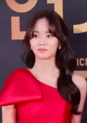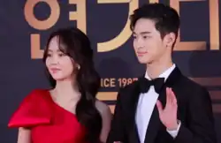 The same year, she was cast alongside Jang Dong-yoon in a romantic comedy drama set in the Joseon dynasty, The Tale of Nokdu as a clumsy and hot-tempered Kisaeng trainee.[113] Chon Kye-young and Hye Jin-yang, the author of both webtoons named Kim as their first choice in casting the leading woman.[114] Shin Ji-won of Hankyung said that Kim So-hyun's character was able to mesmerize the viewers because Kim blended well with her character.[115] Jang Dong-yoon stated, "I was convinced that there would be no better actress to play Dong Joo other than So-hyun, I was very grateful to have met my best partner in her."[116] The pair were donned the nickname "Manhwa tearing" chemistry by the viewers for capturing everything from laughter to excitement and adding their colours to the original characters.[117][118] Her role as Dong Joo earned her the Excellence Award at the year end KBS Drama Awards.[119] The series was the 10th most talked primetime Korean dramas aired in 2019.[120]
