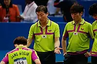 Kim Taek-Soo (Hangul: 김택수, Hanja: 金擇洙, born May 25, 1970) is a former table tennis player from South Korea.[1] He used a one-sided penhold style, compared to the newer style of reverse-backhand looping that has become the Chinese penhold standard.