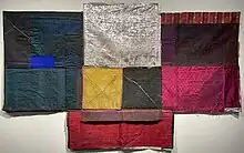 While in University, Kimsooja discovered her love for understanding the connection of aesthetics and human psychology which lead to the motive behind many of her works. Kimsooja references, from her first work to her most recent, how humans react to fabric, paint, sculpture and more, and how we experience the world as humans.[10] Kimsooja's "Sewing" series (1983–1992), her first work with fabric, brought forth an assemblage of systems of horizontals and verticals. Her use of fabric evoked bottari cloth, a traditional Korean wrapping cloth, typically made and used by women. She utilized fabric forming cruciform structures that synthesized an entangled and knotted vision of society and the world into a system of horizontals and verticals.[11] Like the Spatialist painter Lucio Fontana, who pierced the uni-colored canvas with a sharped-edged dagger, Kimsooja also made art that was no longer a screen of illusion but a three-dimensional structure as she weaved through the surface of the work, piercing holes into it.[11] These early sewn works, in turn, were inspired by the fabric and clothes that her grandmother had owned, while also fueled by Kimsooja's own interest in the traditional association between female labor and needlework in Korean culture along with the dynamics of civic and domestic power and the noticeable disconnect of public and private space. Growing up female in South Korea during the mid to late 1990s, Kimsooja created work that many Korean women could relate to through their collective attempts to remove themselves from the patriarchal social systems at play. With such media she intertwines tradition with contemporary art and feminism in South Korea. Kimsooja’s work forces spectators to separate the art from the artist and question humanity’s existence.[12]