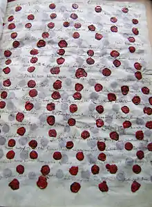 When the constitutional discussions were completed, Schumacher rewrote the new King's Law in duplicate. One was placed in the Privy Council's Archives (Danish: Gehejmearkivet), i.e. in the State Archives (afterwards the Danish National Archives), another at Rosenborg Castle together with the state crowns (Christian IV's and Christian V's) and the other crown regalia. Moreover, the fact that Schumacher had a very large part of the credit for the law is evident from the fact that he countersigned it.[22]