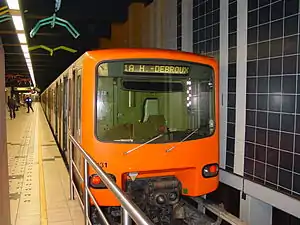 King Baudouin (French: Roi Baudouin, Dutch: Koning Boudewijn) is a Brussels Metro station and the western terminus of line 6 (formerly 1A). It is located in Laeken, in the north-west of the City of Brussels, Belgium, and serves the King Baudouin Stadium. It opened on 25 August 1998.