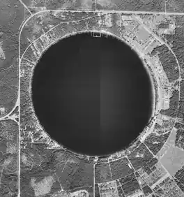 Kingsley Lake is an almost perfectly circular lake of about 2,000 acres (810 ha) in North East Florida, located inside Clay County about six miles (9.7 km) east of Starke, Florida. According to some sources, it is the oldest and highest lake in Florida,[3] located on the edge of the Trail Ridge formation. The lake is a very stable lake with a sandy bottom. Its deepest point is about 100 feet (30 m) inside of a steep sinkhole within the lake, but the lake itself is not considered a sinkhole.[1] Kingsley Lake is so nearly circular that pilots call it the "silver dollar lake". There are around 180 docks around the lake, mostly around the western half of the lake encompassing the small community of the same name. Camp Blanding is on the eastern side of the lake as part of the Florida National Guard, as well as a small airstrip just to the southeast of the lake as part of Camp Blanding. The lake is about 30 miles northeast of Gainesville, 30 miles southwest of Jacksonville, and 30 miles northwest of Palatka.