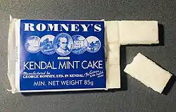 Kendal is known for Kendal mint cake, a glucose-based confectionery reputedly discovered accidentally by Joseph Wiper during a search for a clear glacier mint.