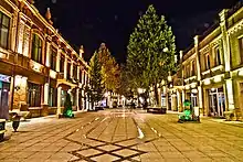 Ganja (/ˈɡændʒə/; Azerbaijani: Gəncə [ɟænˈdʒæ] ⓘ) is Azerbaijan's third largest city, with a population of around 335,600.[2][3][4] The city has been a historic and cultural center throughout most of its existence. It was the capital of the Ganja Khanate until 1804; after Qajar Iran ceded it to the Russian Empire following the Treaty of Gulistan in 1813, it became part of the administrative divisions of the Georgia Governorate, Georgia-Imeretia Governorate, Tiflis Governorate, and Elizavetpol Governorate.[5][6][7] Following the dissolution of the Russian Empire and the Transcaucasian Democratic Federative Republic, it became a part of the Azerbaijan Democratic Republic, followed by Azerbaijan SSR, and, since 1991, the Republic of Azerbaijan.