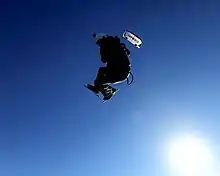 Kite skating, sometimes referred to as ice kite skating, para-skating or para ice skating, is an ice-based sport using a large controllable kite to propel ice skaters across frozen rivers, frozen lakes and other frozen surfaces. With a traditional diamond-shaped kite it's quite possible to go much faster than the wind speed by angling the kite much as a sailboat can trim its course and sails for greater speed. In fact, it's possible to exceed safe speeds quite easily, leaving one's legs exhausted from absorbing the shock of bumpy ice and becoming susceptible to spectacular crashes. On a gusty winter day one spends considerable time raising the kite in the air parallel to the ice or to the opposite direction of riding to slow down somewhat. This sport unlocks a lot of possibilities on new tricks to be added or invented like ''Double around the world" in the YouTube video - This is Kiteskating. Helmet, elbow and knee protection strongly advised. Also much smaller kite suggested than same wind conditions on the water as there is no friction or resistance on the ice skates. Be very cautious not to ride over the lines while setting up.