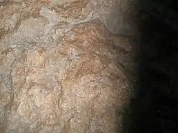 Kizil-Koba (The Krasnaya Cave -literally translates as the Red Cave) is the biggest grotto of the Crimea and one of the karst cave that appear on the limestone in Eastern Europe. The cave is known as the "Kiikin-Kobasy" (Savage's Cave) by local Tatars or “Kiik-Koba” (Wild Cave) chosen by the archeologist Bonch-Osmolowski.[10][6][11]