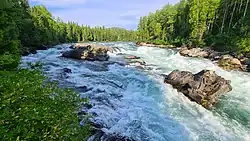The Kizir (Russian: Кизир) is a right tributary of the Kazyr. It flows through the Eastern Sayan Mountains in the Krasnoyarsk Krai of Russia. Its source is located in the Kryzhin Range. It is 300 kilometres (190 mi) long, and has a drainage basin of 9,170 square kilometres (3,540 sq mi).[1] The river contains many cataracts which make it popular with Siberian rafters. Another tourist attraction is the Kinzelyuk Waterfall, one of the highest in Asia.