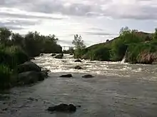 The Klamath name for the Link River white water falls was Tiwishkeni, or "where the falling waters rush".[10] From this Link River white water phenomenon "Falls" was added to Klamath in its name. In reality it is best described as rapids rather than falls. The rapids are visible a short distance below the Link River Dam, where the water flow is generally insufficient to provide water flow over the river rocks.