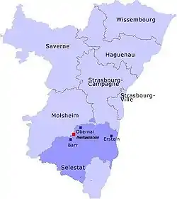 The Savagnin vine was introduced to the Alsace region in 1740 by Erhard Wantz, mayor of the village of Heiligenstein. Ampelographers believe that the cuttings that Wantz brought originated from vineyards planted in the Italian Alps near Chiavenna in Lombardy.[3] In 1971,[4] the Klevener de Heiligenstein designation was included in the AOC regulations for Alsace. It is not a separate appellation, but rather a designation within Alsace AOC which is defined both in terms of the grape variety and location within Alsace.[2] This differs Klevener de Heiligenstein from the other varietal designations of Alsace AOC, which may be used in the entire region. Also, Savagnin rose grape is the only Alsatian grape variety which is restricted to a specific subregion of Alsace, i.e. to Heiligenstein and the specified areas of the surrounding villages cited above.[5]
