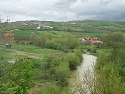 As it flows parallel to the Ibar and Sitnica rivers, it passes next to the medieval ruins of Perkovac town and the village of Gornja Klina, reaching the regional center of Skenderaj, the village of Lauša and the monastery of Devič, where the Klina turns southwest, marking the northern border of the Drenica region.