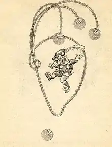 Kobold beliefs represent the survival of pagan customs into the Roman Catholic and modern eras and offer hints of how pagan Europeans worshipped in the privacy of their homes.[11] Religion historian Otto Schrader has suggested that kobold beliefs derive from the pagan tradition of worshipping household deities thought to reside in the hearth fire.[12] Alternatively, Nancy Arrowsmith and George Moorse have said that the earliest kobolds were thought to be tree spirits.[13] According to 13th-century German poet Conrad of Würzburg, medieval Germans carved kobolds from boxwood and wax and put them "up in the room for fun".[14] Mandrake root was another material used.[15] People believed that the wild kobold remained in the material used to carve the figure.[13] These kobold effigies were 30 to 60 cm (12 to 24 in) high and had colourful clothing and large mouths. One example, known as the monoloke, was made from white wax and wore a blue shirt and black velvet vest.[15] The 17th century expression to laugh like a kobold may refer to these dolls with their mouths wide open, and it may mean "to laugh loud and heartily".[14] These kobold effigies were stored in glass and wooden containers.[15] German mythologist Jacob Grimm traced the custom to Roman times and argued that religious authorities tolerated it even after the Germans had been Christianised.[8]