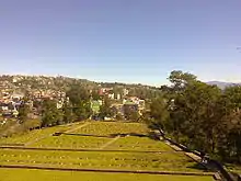 Kohima (/koʊˈhiːmə/ ⓘ; Angami Naga: Kewhira (IPA: [ˈkɛʍɪɻə])) is the capital of the Indian state of Nagaland. With a resident population of almost 100,000, it is the second largest city in the state.[1] Kohima constitutes both a district and a municipality. The municipality covers 20 km2 (7.7 sq mi). The city lies on the foothills of Japfü section of the Barail Range located south of the District (25.67°N 94.12°E)[2] and has an average elevation of 1,261 m (4,137 ft).[3]