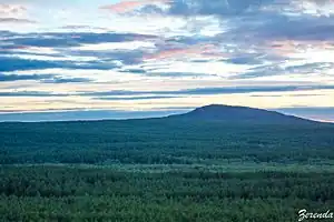 Kokshetau National Park (Kazakh: Көкшетау ұлттық паркі, Kökşetau ūlttyq parkı) features the unique landscape, archaeological sites, and recreational opportunities of the Kazakh Uplands of Northern Kazakhstan. Located in the transition zone between the Siberian taiga (to the north) and the southern steppes, the terrain is an "island" of forests, lakes, and mountains surrounded by steppe.[1] Kokshetau is located in Zerendi District, Aqmola Region and Aiyrtau District, North Kazakhstan Region. The park boundary is 45 kilometres (28 mi) west of the city of Kokshetau itself, and 275 kilometres (171 mi) northwest of the capital city of Nur-Sultan.
