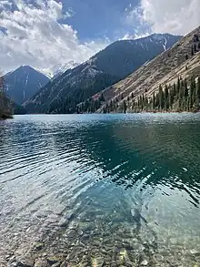 The park's lakes are strung along the Kolsay River, which flows south-to-north out of the Tian Shan. Two ranges of the Tian Shan contribute: the Küngöy Ala-Too Range and the Trans-Ili Alatau.[3][4] The major lakes include:[5]