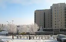 Since 2006 in Koltsovo 4 new neighborhoods have been constructed and the 5th is planned to be built in the next 5 years.[31] It provides population growth as well as high birth rate in Koltsovo. Koltsovo has a high-level medical complex, including a refurbished policlinic with new center for rehabilitation for children with cerebral palsy,[32] schools, including a boarding school with specialisation in biotechnology,[33] kindergartens, recreation centers, a recently refurbished art school,[34] trading centers, drug stores, market, cafés, and a hotel. Koltsovo Park offers downhill skiing in winter and fishing and horse riding in summer.[35] Koltsovo has a stadium, refurbished in 2008, with running tracks, tennis court, football and volleyball fields.[36] The social life thrives with guest performances of Novosibirsk theaters and concerts. The Youth Parliament,[37] which implements social projects, was organized by students living in Koltsovo.