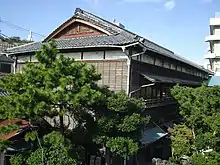 From 1933 to 1934, a new wing of the house was constructed on the previous site of the garden: a Western reception room and seven Japanese-style rooms. One of the users of the reception room was Isoroku Yamamoto. As of 2012, this room is a museum with historic materials related to the Japanese navy.[17] Seven Japanese-style rooms are composed of various woods such as Paulownia tomentosa, rosewood, Chamaecyparis obtusa, maple and pseudocydonia. The Momiji (Japanese maple or Autumn leaf color in general) Room was top-grade and used by various admirals such as Isoroku Yamamoto. The room came to be known as the chokan-beya (the Admiral's room).[18] In the second floor of the new wing is a large room as large as 160 mats. Komatsu Yamamoto, the first mistress, used to appear in Japanese-style parties until she was 88 in 1935. She was given a gala 88th year birthday party. Then, she retired and died at age 94 in 1943.[19]