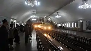Konsol Station (Korean: 건설역; Hanja: 建設驛) is a station on Hyŏksin Line of the Pyongyang Metro.[1] It is notable for being the only station in the Pyongyang Metro to use side platforms, as all other stations use an island platform configuration instead.[1]