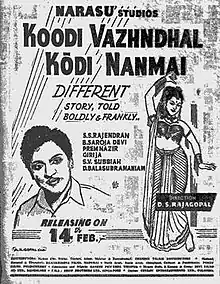 Koodi Vazhnthal Kodi Nanmai (transl. Unity is propitious) is a 1959 Indian Tamil-language film produced by V. L. Narasu and directed by D. S. Rajagopal. The film stars S. S. Rajendran and B. Saroja Devi.[3]