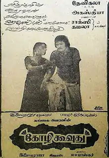 Kozhi Koovuthu (Tamil pronunciation: [koːɭi] transl. The chicken is clucking) is a 1982 Indian Tamil-language romantic musical film[1] written and directed by Gangai Amaran in his debut. The film stars Prabhu, Suresh, Smitha and Viji in her acting debut.[2] The film has music by Ilaiyaraaja, cinematography by P. S. Nivas, editing by B. Lenin, and was released on 25 December 1982.[3]