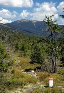Králický Sněžník (Czech: [ˈkraːlɪtskiː ˈsɲɛʒɲiːk]) or Śnieżnik (Polish: [ˈɕɲɛʐɲik]) is a mountain in Eastern Bohemia, located on the border between the Czech Republic and Poland. With 1,423 metres (4,669 ft), it is the highest mountain of the Snieznik Mountains.