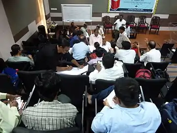 Participants join in a workshop on book publishing at the Central Library, Panjim.
