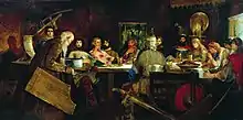 The Gusli is one of the oldest musical instruments that have played an important role in the Russian music culture. Vertkov states that the first mentions of the Gusli date back to 591 AD to a treatise by the Greek historian Theophylact Simocatta which describes the instrument being used by Slavs from the area of the later Kievan Rus' kingdom. However, it is not exactly clear what instrument was meant by that word, because in Old Slavic or Old Russian "gusli" was used to refer to any stringed instrument. The first documented gusli were recorded in 1170 in Veliky Novgorod in Novgorodian Rus'.[1] The Greek historian Theophan also mentioned the gusli. During the war at the end of the 6th century, the Greeks took Slavonic prisoners and found a musical instrument named the Gusli. This corresponds to what the Arabic authors Al-Masudi and Ibn-Dasta mentioned in the 10th century.