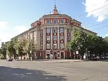 After the formation of the Soviet Union and the expulsion of Austro-Hungarian forces and then anti-communist forces under Anton Denikin occupying the region relative normalcy was resumed.[1] Planning for the Kryvorizhstal began in 1929, with the intention being to produce an integrated steel plant taking iron ore and carbon all the way to finished steel products.[3] In 1931 the chairman of the Supreme Economic Council of the USSR - Grigori (Sergo) Ordzhonikidze signed a decree ordering its construction[4] and the same year the foundation stone of the metallurgical works was laid, workers included prison labourers, and initially German and Americans as well. In August 1934 the first metal was produced at Kryvorizhstal;[1] then known as 'Kryvyi Rih Metallurgical Works' (криворожский металлургический комбинат)[4]