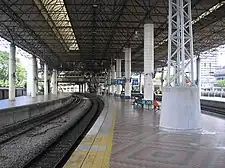 After the diversion of long-distance intercity rail traffic less than a kilometer south to Kuala Lumpur Sentral on 15 April 2001, the original station's importance diminished. While intercity trains continue to pass the station, they no longer stop there, relegating the station to being a stop for Komuter and goods services. As a result of declining passenger traffic and patronage, redundant station facilities, such as staffed ticket counters for intercity services, station offices and rented businesses spaces, were decommissioned or slowly vacated. The Heritage Station Hotel ceased operation in 2011 following declining patronage and a series of mismanaged renovations in the late-2000s; the hotel was briefly reopened in 2014 before closing the same year.[2] While the side platforms of the original station, which have already been raised to a leveled height for smooth embarking and disembarking for intercity coaches, were readily usable from KTM Komuter trains, the configuration of the island platform and access to services in the first 15 years of the Komuter's service meant that the original station could not be maximised for use as a transportation stop for electric trains until 2009 renovations raised the last of the original platforms (see platform).