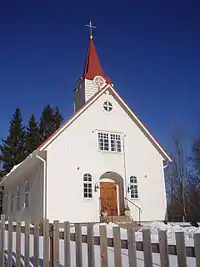 The chapel was destroyed in a fire on 27 May 2000, connected to Satanism,[2] but was rebuilt and reopened on 13 May 2001.