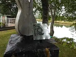 A granite memorial headstone inscribed with Cobain quotes rests in the park.[5] Part of one of the quotes was sandblasted away because the city mayor found the phrase "[drugs] will fuck you up" offensive.[6][7]